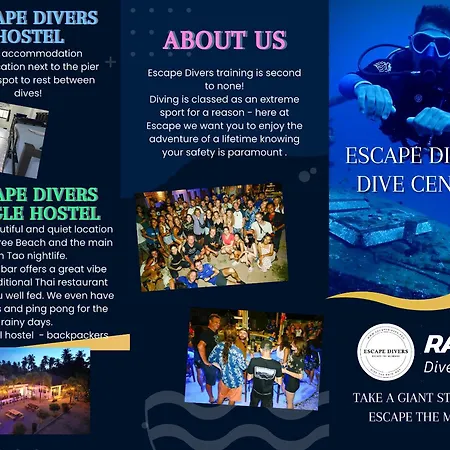 O hostel Escape Divers dispõe de armazenamento de bagagem e está localizado a 10 minutos de carro da Praia de Sai Nuan.